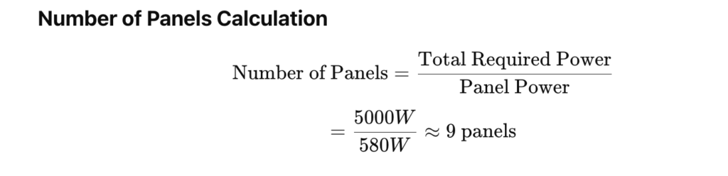 For a 5KW setup, we opt for 580W panels as they offer a balance between efficiency and cost.